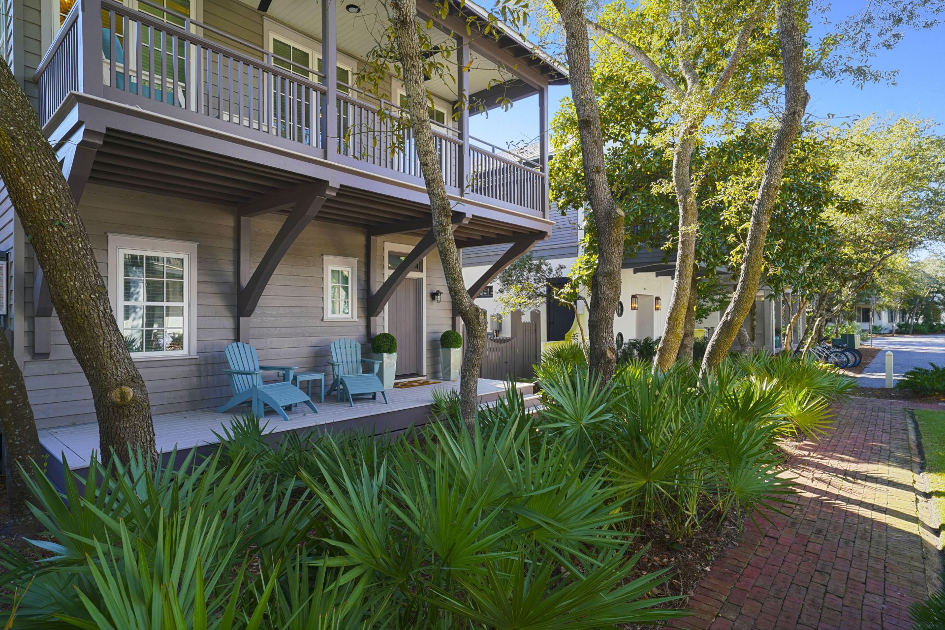 Designed by Robert Orr, this home is perfectly positioned on a tranquil pocket park on the Gulf side of Rosemary Beach. Fully remodeled in 2025 to include beautiful updates throughout: light wood floors, Chef's kitchen with Wolf range, all new appliances, Rinnai hot water heaters, and new windows. The main house boasts two primary suites, along with two additional guest bedrooms and a bunk room. A bright, open concept Chef's kitchen/living on the second floor offer a wonderful space for entertaining. The addition of the carriage house in 2025 offers a generous living area, separate bedroom and sleeping loft with bunks.Both the main and carriage house have been newly furnished in the fall 2025. The new pool and summer kitchen are tucked in the courtyard for your enjoyment We invite you to see 25 St. George's Lane for yourself.