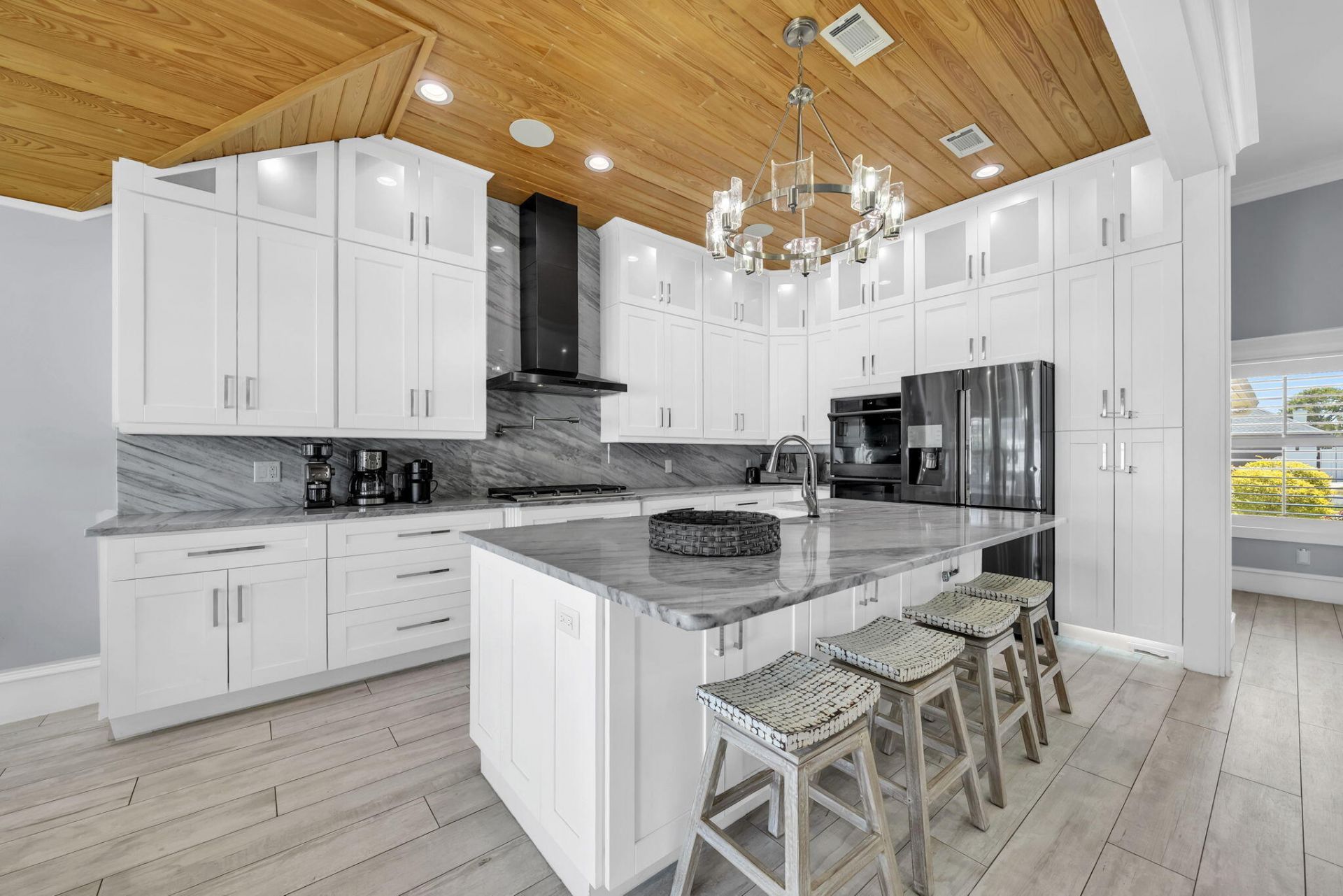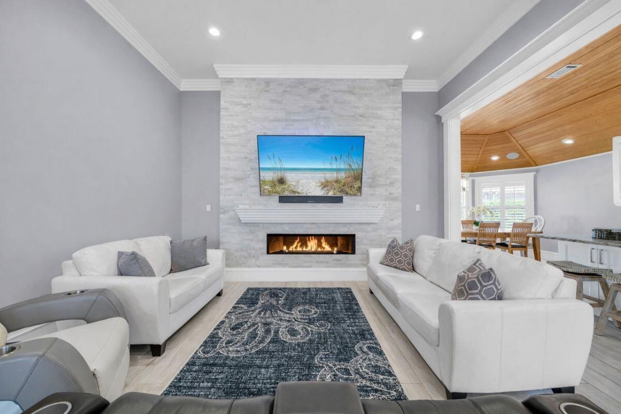 Tech-Forward Coastal Retreat With Private Beach Access--Remodeled in 2020 with an extraordinary level of finish and craftsmanship, this home presents a rare take on coastal luxury- sophisticated in design, effortless in function and remarkably livable on a single level. From the moment you enter, soaring ceilings, a hand-hewn marble stacked stone gas fireplace, reversed cake-tiered crown molding and carefully selected designer lighting set a striking tone. The open floor plan lives larger than its 2,200 square feet, enhanced by long-plank porcelain wood-look tile and seamless sightlines through the main living spaces. At the heart of the home, the kitchen pairs artistry with utility. Floating cabinetry with undermount lighting, quartz counters and backsplash and intricate custom cabinetry create a space that feels both polished and distinctive. Hand-hewn Florida cypress adds warmth and character, carrying through the home in a way that feels richly architectural rather than merely decorative. Full app integration and Sonos surround sound throughout the interior and exterior add a modern layer of convenience, allowing lighting and audio to be adjusted with ease. The primary suite is especially memorable, framed by vaulted Florida cypress ceilings and anchored by a spa-like bath with marble flooring, floating cabinetry, undermount lighting, dual vanities and an open walk-in shower. The custom rain showerhead, fabricated in Germany, adds another thoughtful detail. A walk-in closet with built-in cabinetry and automated lighting continues the home's tailored, tech-forward sensibility. A private guest wing is separated by a solid cypress barn door and offers exceptional flexibility. Two additional bedrooms each feature ensuite baths, Florida cypress ceilings and closets with automated lighting. One of these rooms can easily serve as a second primary suite thanks to its deep soaking tub with armrests, walk-in shower and three separate shower heads, including another custom German-fabricated rain showerhead. Throughout the baths, floating cabinetry, quartz countertops and custom tilework reinforce the home's consistent attention to detail. Practical spaces were given the same level of care. The spacious laundry room includes quartz countertops, extensive built-in cabinetry, shoe storage and motion-activated lighting. The attached two-car garage adds convenience, while smart security features include a front door that automatically locks when left unsecured and a garage door that closes on its own after an hour. Outdoors, a generator, hurricane shutters, and an irrigation system that delivers water directly to individual plants' roots for a more efficient approach to landscape care. Set within Avalon Beach Estates along Scenic Highway 98, this residence also enjoys access to an impressive collection of neighborhood amenities, including Deeded Gated Beach Access, a heated swimming pool, tennis courts, pickleball courts, park areas, basketball and a quiet no-through-traffic setting. Dining along Scenic Highway 98, Destin Commons, beachside favorites including The Crab Trap, Captain Dave's and Pompano Joe's, plus a variety of shopping and entertainment options are all just minutes away. Equal parts refined and relaxed, this is a home that brings together craftsmanship, comfort and coastal convenience in a truly uncommon way.